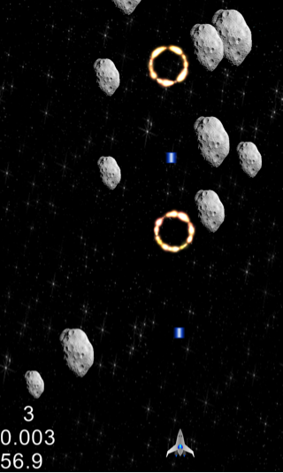 Build/deploy the project. You should be able to shoot and destroy asteroids. If the player spaceship collides ten times, it will become invisible indicating game over. At this point, you will still be able to shoot because our touch event code doesn’t know about this. We will address this at a later point in the tutorial when we implement the final parts of the game.